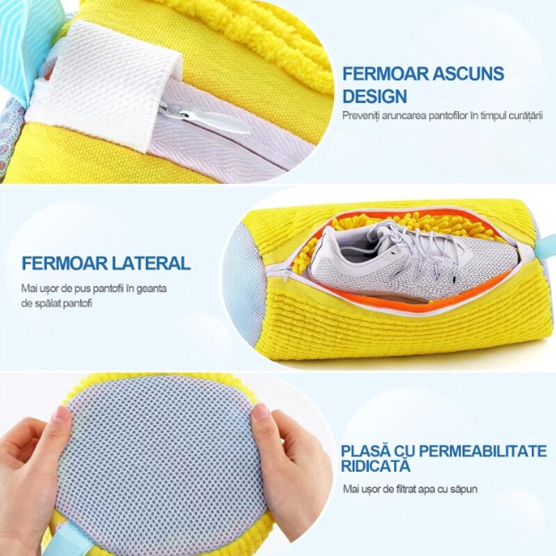 Materialul elastic si suportul bun previn deformarea incaltamintei in timpul spalarii. Designul din poliester protejeaza pantofii de zgarieturi sau deteriorari, contribuind la o durata mai lunga de viata.